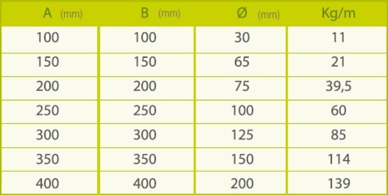 Les défenses type DC sont similaires aux défenses type DD. Leurs applications sont identiques. La section intérieure est circulaire.