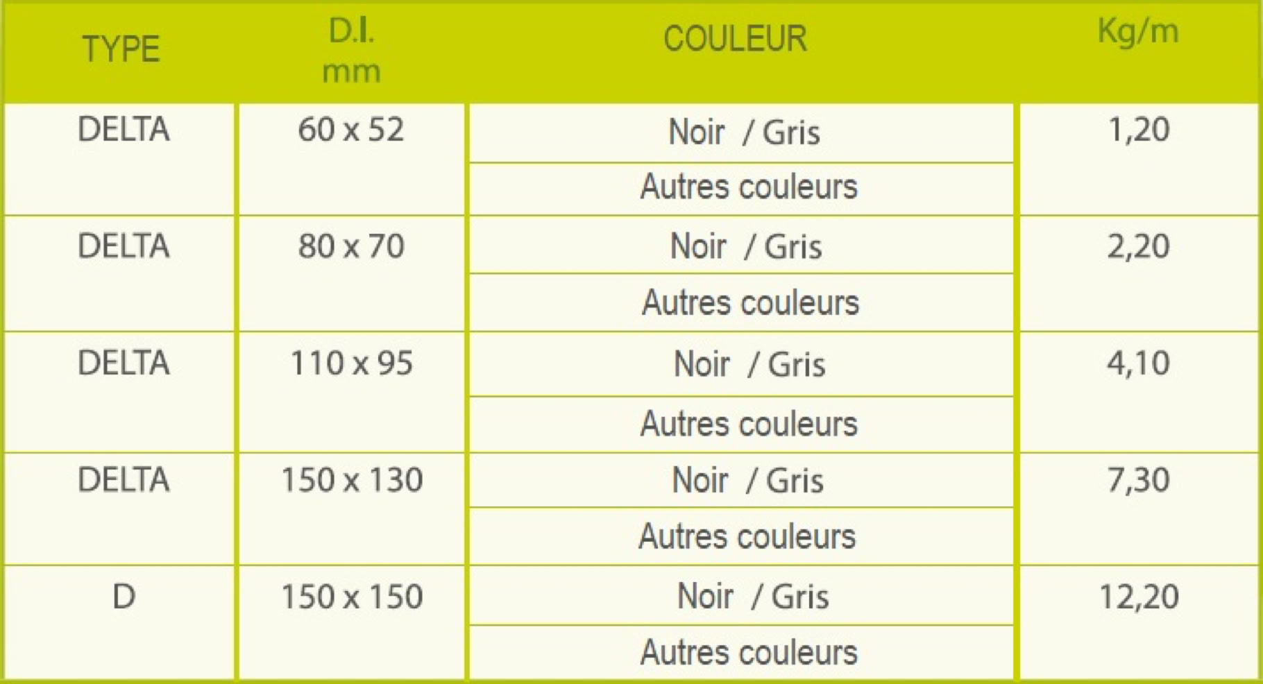 Disponible en type D et Delta, en différentes couleurs et tailles.